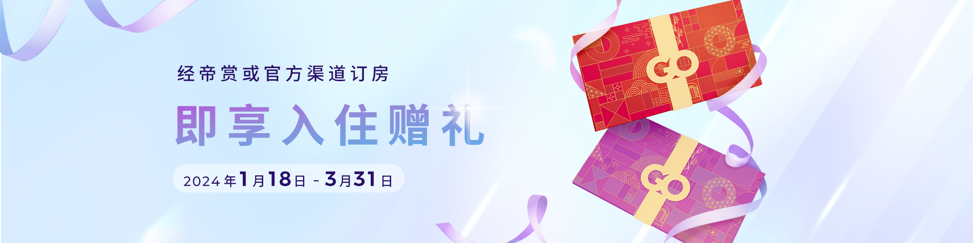 新的一年,与帝赏和 "帝" 系酒店一起开启新旅程,随 "赏" 幸福时刻!各位会员只须经帝赏或酒店官方渠道订房,并于2024年1月18日至3月31日期间入住其中一间 "帝" 系酒店,即可于入住期间领取以下入住赠礼!
