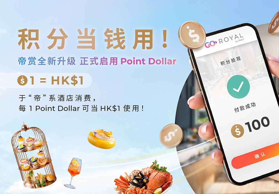 帝赏全新升级,正式启用 Point Dollar!帝赏会员于"帝"系酒店消费,可通过帝赏APP或微信小程序,