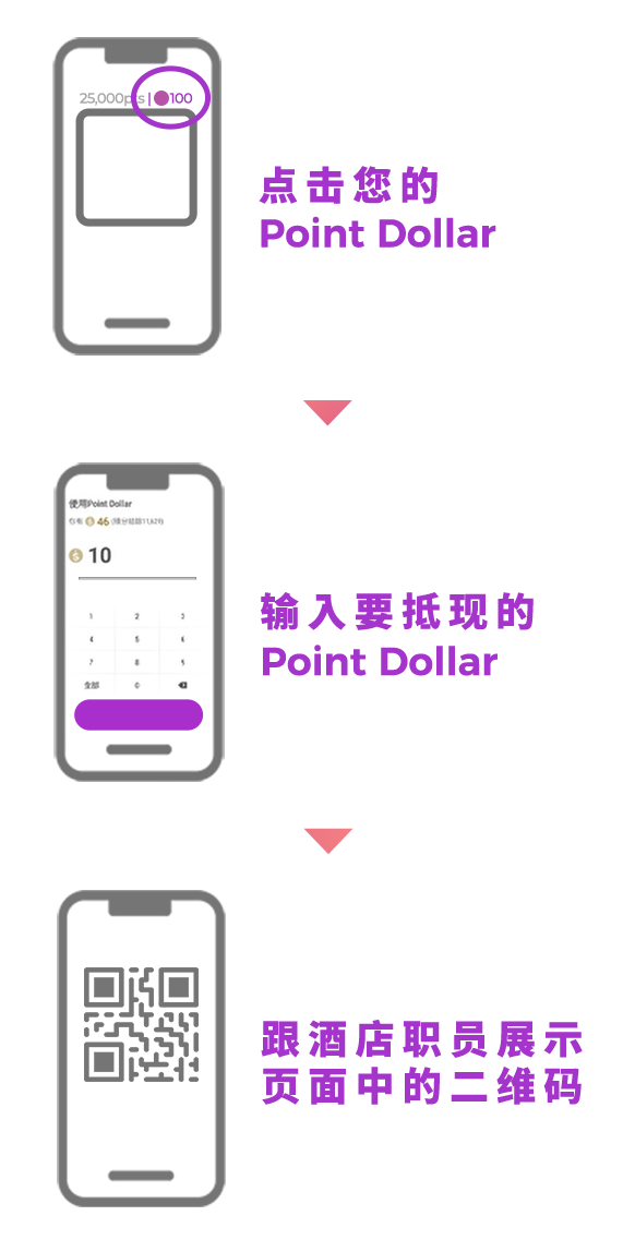以积分抵现 Point Dollar 并于酒店及餐厅消费时积分当钱用!
