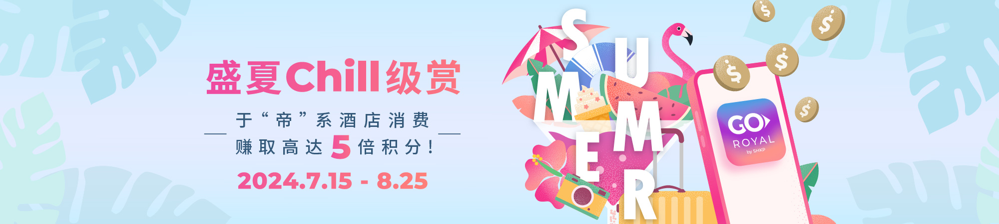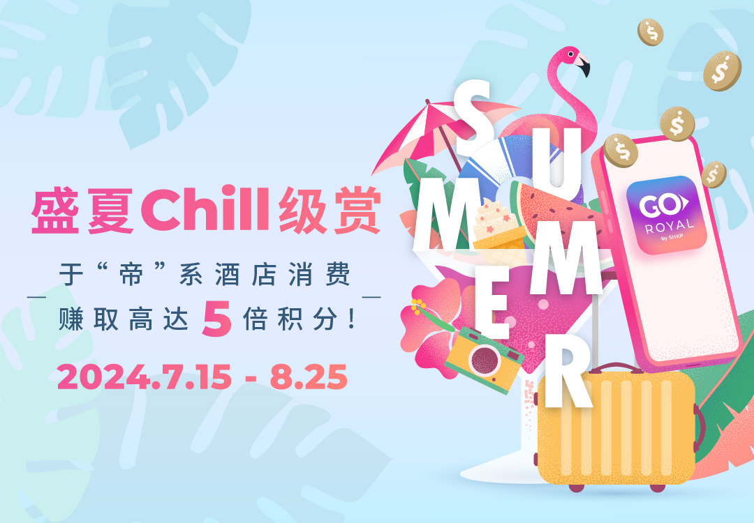 由2024年7月15日至2024年8月25日,帝赏会员只需于帝赏APP或官方网站之活动页面完成登记,并于"帝"系酒店凭指定合资格消费*成功赚取积分至指定门槛,即可获享高达5倍积分。额外积分详情如下: