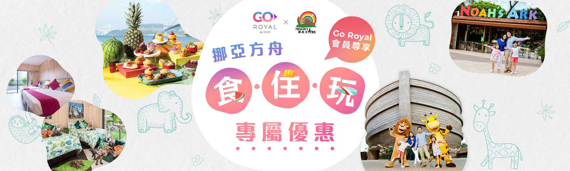 現於挪亞方舟亦可享8折門票優惠;會員更可於Go Royal App 或 Go Royal 微信小程序內,以優惠價兌換挪亞方舟度假酒店的各種住宿及餐飲獎賞!