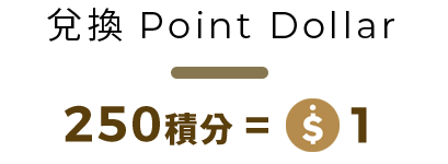 Go Royal會員可以每250積分兌換成$1 Point Dollar,每$1 Point Dollar 可當HK$1使用,最低兌換金額為$10 Point Dollar 起(即2,500積分),不設上限。